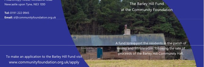 The Barley Hill Fund at the Community Foundation is open for applications in 2019. The Fund will award grants from £750 to £2,000 to projects which benefit the residents of Healey and Minsteracres Parish where the hall was situated.